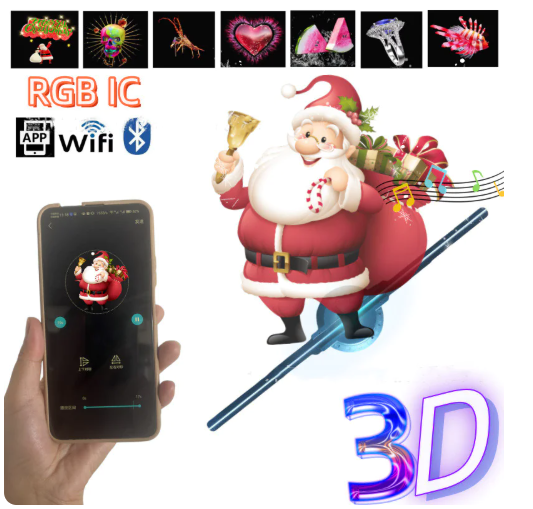 Answer 1: You can showcase stunning 3D holographic images and animations, thanks to its high-definition visuals powered by 832 high-brightness LED lights. Additionally, you have access to over 700 customizable videos, ranging from festive greetings to product highlights.